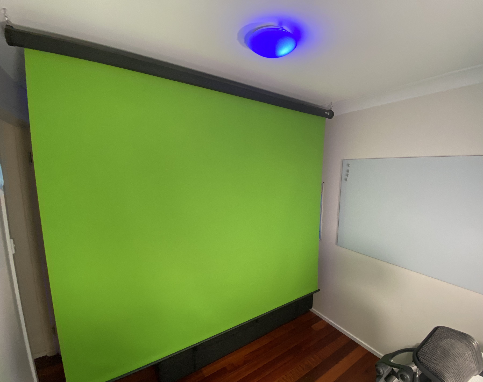 - Elgato Green Screen MT. I tried the bedsheet thing, I tried painted cardboard, I tried all of the different things you could think of to get an excellent, flat, storable green screen solution - Then I found this thing. It's fantastic and attached to the roof via a couple of hooks and fairly hefty drywall anchors. If you're doing green screen stuff, then save yourself a tonne of hassle.