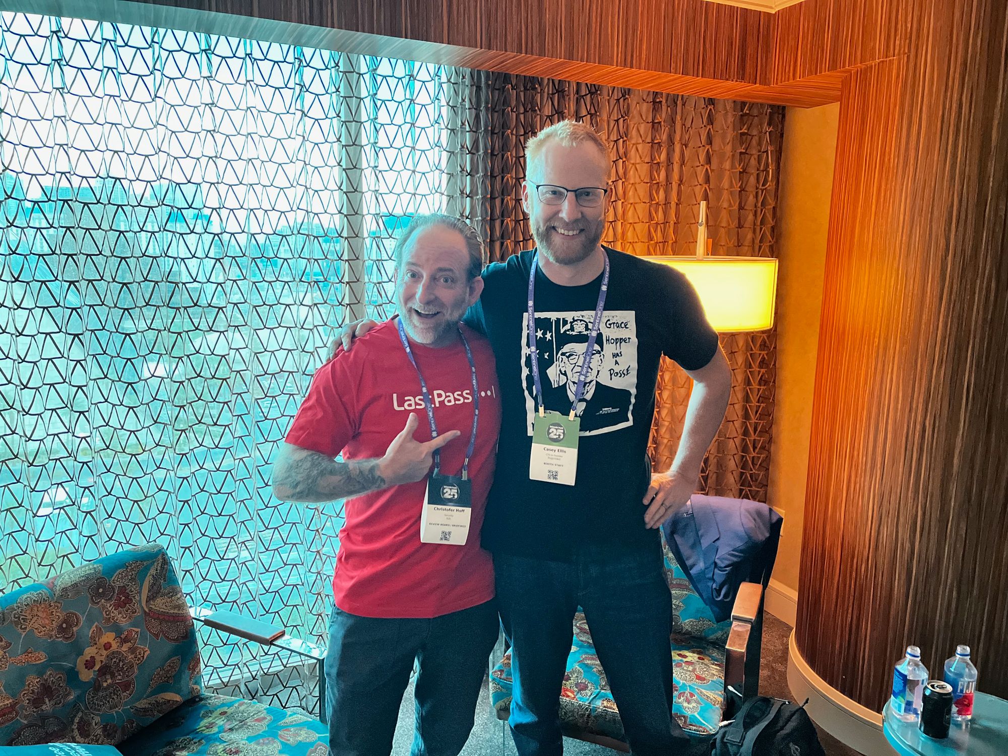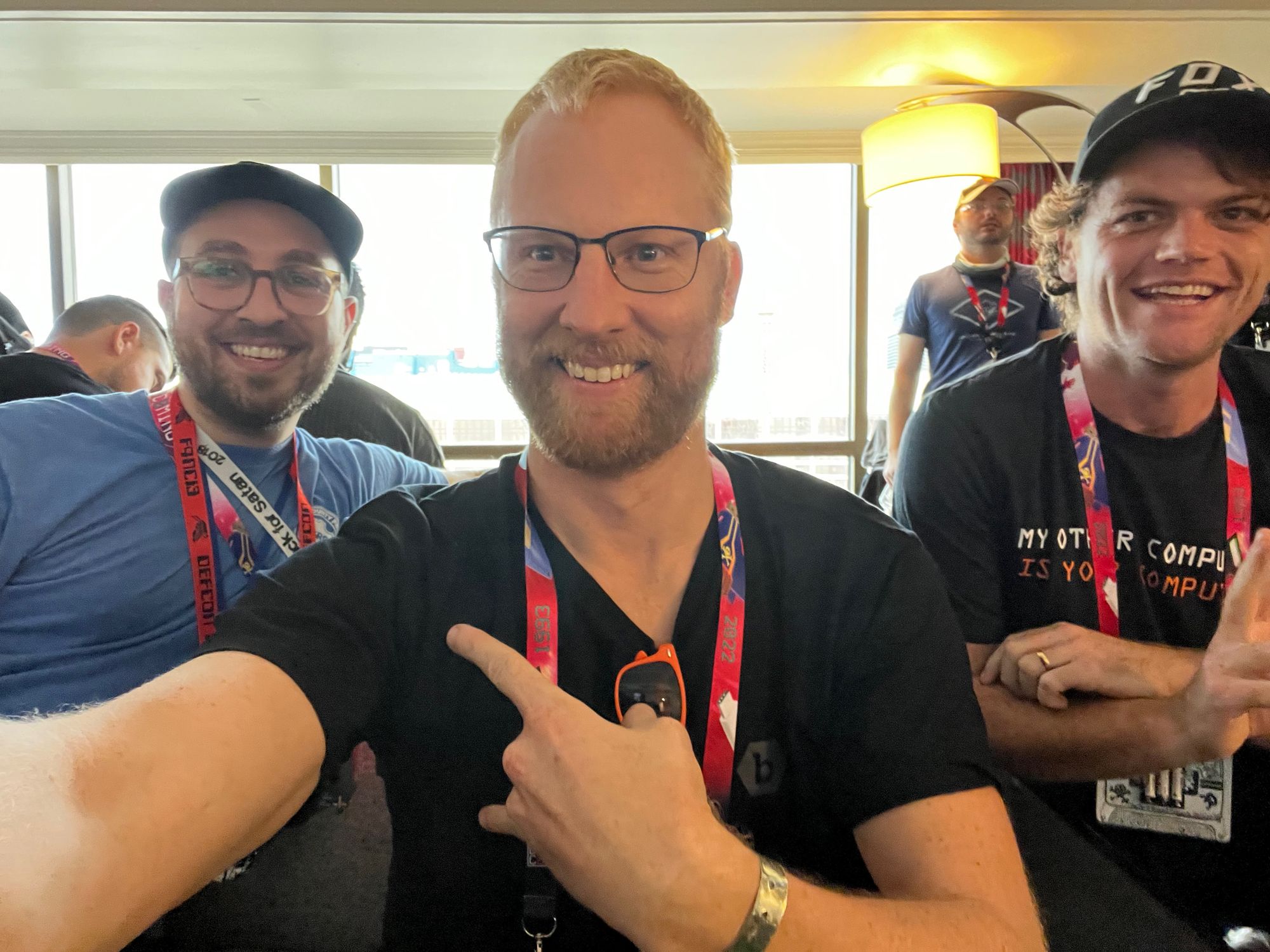 Welcome to DEF CON 30!Amazingly, in spite of knowing @beaker from Clouderati days and having been in the same places dozens of times before, we'd never had a proper 1:1 jam before - It was glorious.The legendary @amitelazari talking policy, as she does, at the Intel booth at Blackhat.A wild @fransrosen appears!And a wild @synick appears too - I was fortunate to get some solid hang time in with this guy throughout the week, he's an incredible human.Caution: Hacker. (This shirt was Bugcrowd's last HSC tee before COVID, and it felt pretty great to throw it back on)Caution: Australians.Biggest love for this guy - @nnwakelam is permanently 16/17 years old in my head until I see him IRL and am continually floored at how far he has come as a hacker, a leader, and a genuine role-model for up and comers.After probably 7 years of trying to get IRL but failing, I finally got to have a beverage with @imhaxormad (Big ups to him for the Nepalese translation on https://policymaker.disclose.io!)"Of all the gin joints in all the world" with @weldpondThe man, the myth, the irrepressibly handsome @dcuthbert <3"Oppositional Defiance as-a-Service" with @gadievron@sasi2103 is another one of those hackers in the bug bounty space who feels like they've been around forever, and just continues to innovate, learn knew stuff, and kick ass.First time IRLs with @bsysop and <REDACTED> at the bug bash event.Afterparty following the two bug bash live hacking events Bugcrowd put on during HSC2022.ALL THE HEXAGONSShoutout to @drunkrhin0 for snagging me a nice h4xory bio shot in front of the TVs <3Yes, I got caught outside in the Vegas storms on Wednesday. It was glorious but SUPER wet.Rooftop times with Jason Shirk, one of the true OG in getting bug bounty up and going back in the day.It really was a pretty baller rooftop...First time IRL with @fox0x01, and always awesome to see @dguido and @mdowd!SWAAAAAAG!Always great to bump into @phillipwylie as he cavorts around the countryside teaching hackers how to be awesome <3The Airbus demo system at the Aviation Village at DEF CON.Short but sweet catchup with @carfucar at the Car Hacking Village, if you're into or interested in automotive security and don't follow this guy, you definitely should.More Oppositional Defiance as-a-Service with @mercuryiss, @g33kseed, and @planzi.My good mate in the policy and Hack The Planet trenches @beauwoods - The amount of work this guy and his team put into the Policy Department was extraordinary, and it paid off.A wild @zephyrfish appears (complete with @beauwoods photobomb).A few of my favorite hackers (Props to @andrew__morris of @greynoise for picking these folks up!)Riffing on ideas like old days with Bugcrowd OG @dantrauner and Bugcrowd Head of Data Science Ian Conway.Moar car h4xory connections with @mintynet and his sidekick <3@sickcodes rocking the locknote talk with his John Deere pwns at DEF CON (and no, for the last time, we're not brothers :'))Faz and I both looking a little dusty but still vertical on the last day.TLP:REDGorgeous Vegas skyline.Getting ready for the offensive tooling export control panel with @lizwharton and @k8em0.Some of my favorite swag from the Policy Department - Huge shoutout to @rororah!